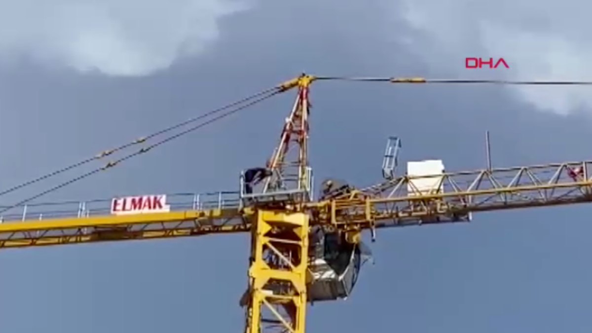 Yerden 45 metre yükseklikte namazını kılan operatör, oğlu Yusuf Turan Kan’ın 6’ncı doğum günü için hazırladığı balonları ve Türk bayrağını da vince astı.