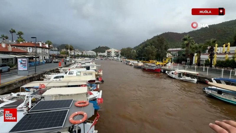 - Marmaris’te sağanak yağışla denizin rengi kahverengiye döndü